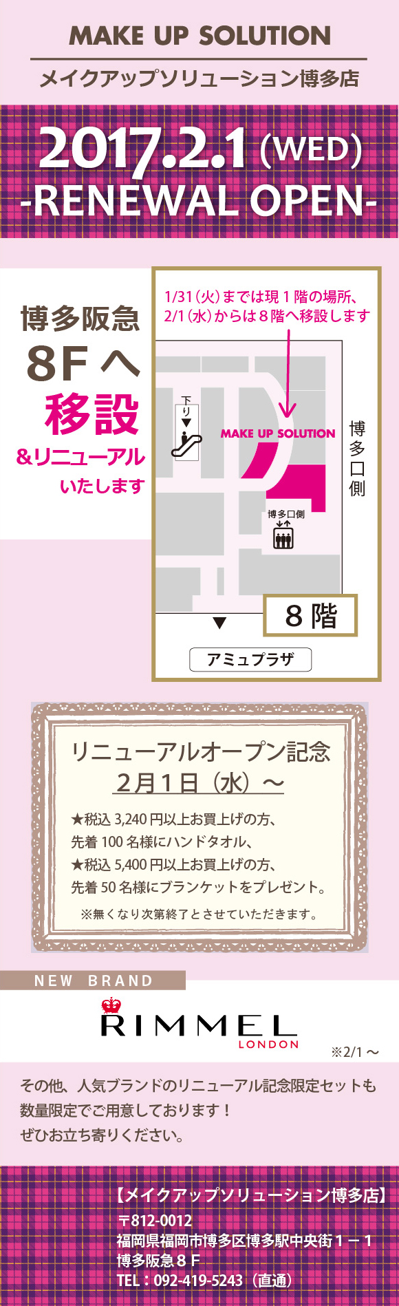 6/27(水)メイクアップソリューション星ヶ丘がリニューアル